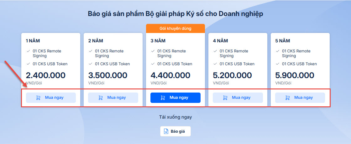 Bước 1: Chọn mua Bộ giải pháp Ký số