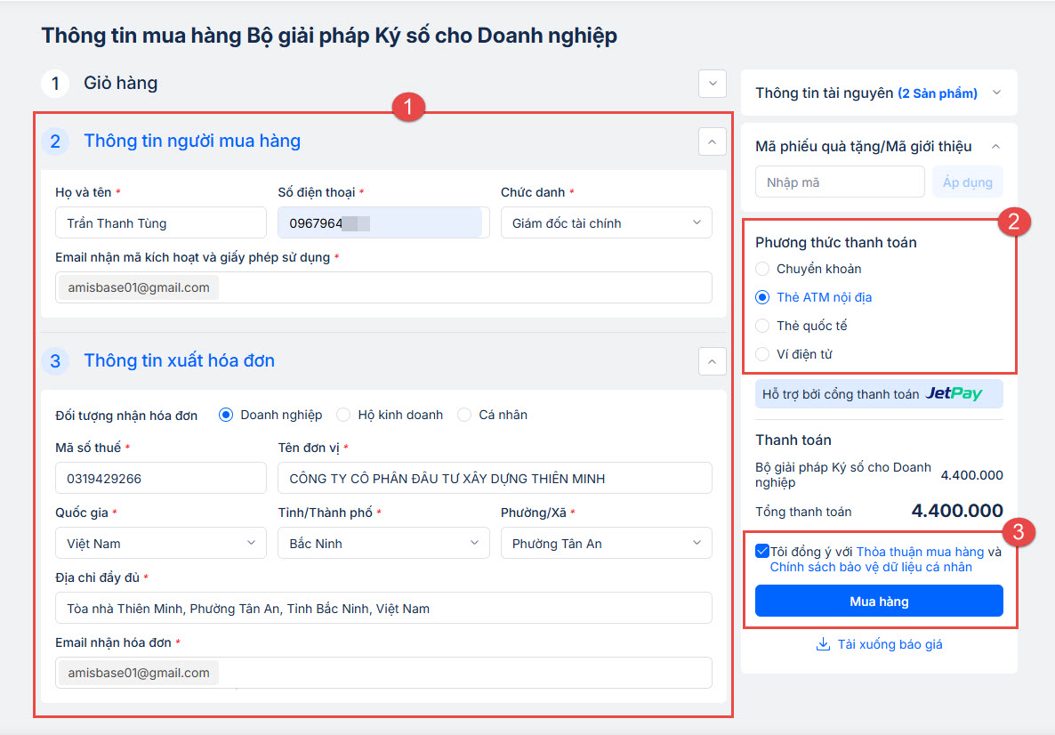 Bước 2: Nhập thông tin mua hàng và thanh toán