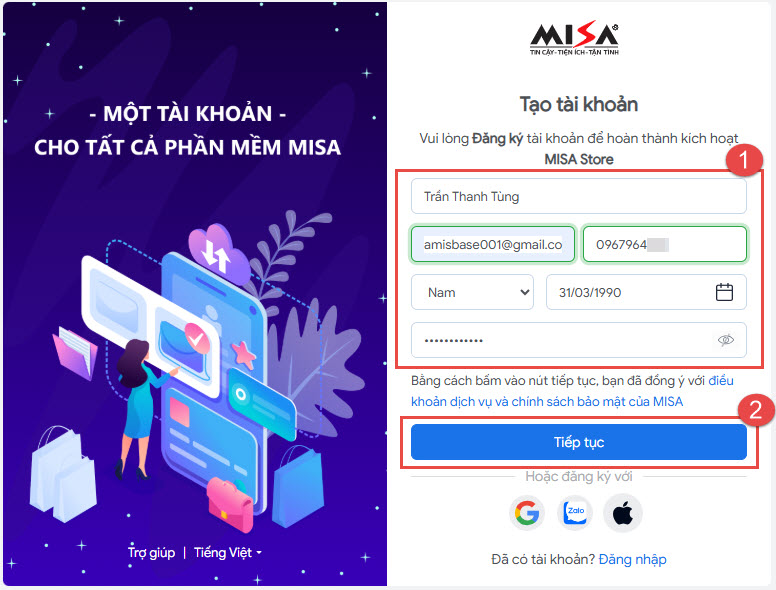 - Tiếp theo, anh/chị thiết lập các thông tin sau: