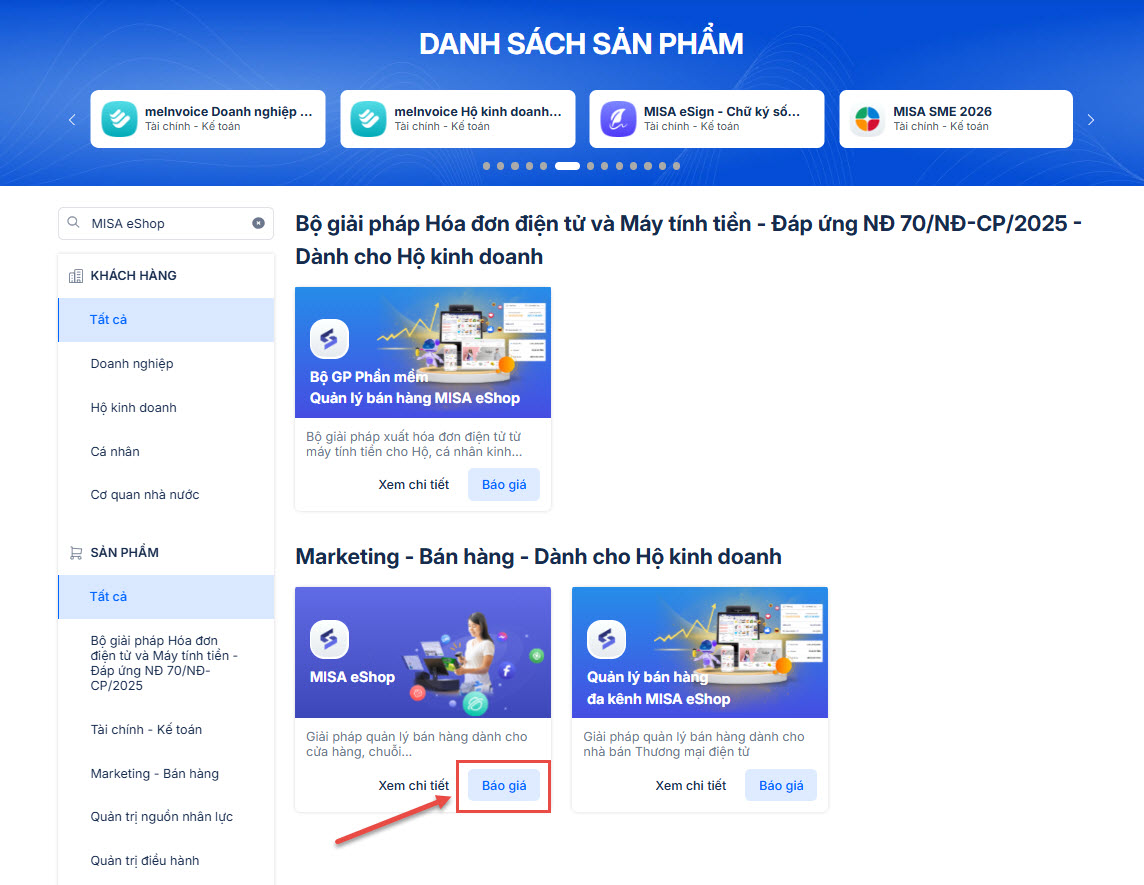• Anh/chị truy cập MISA Store và tìm kiếm sản phẩm MISA eShop.
