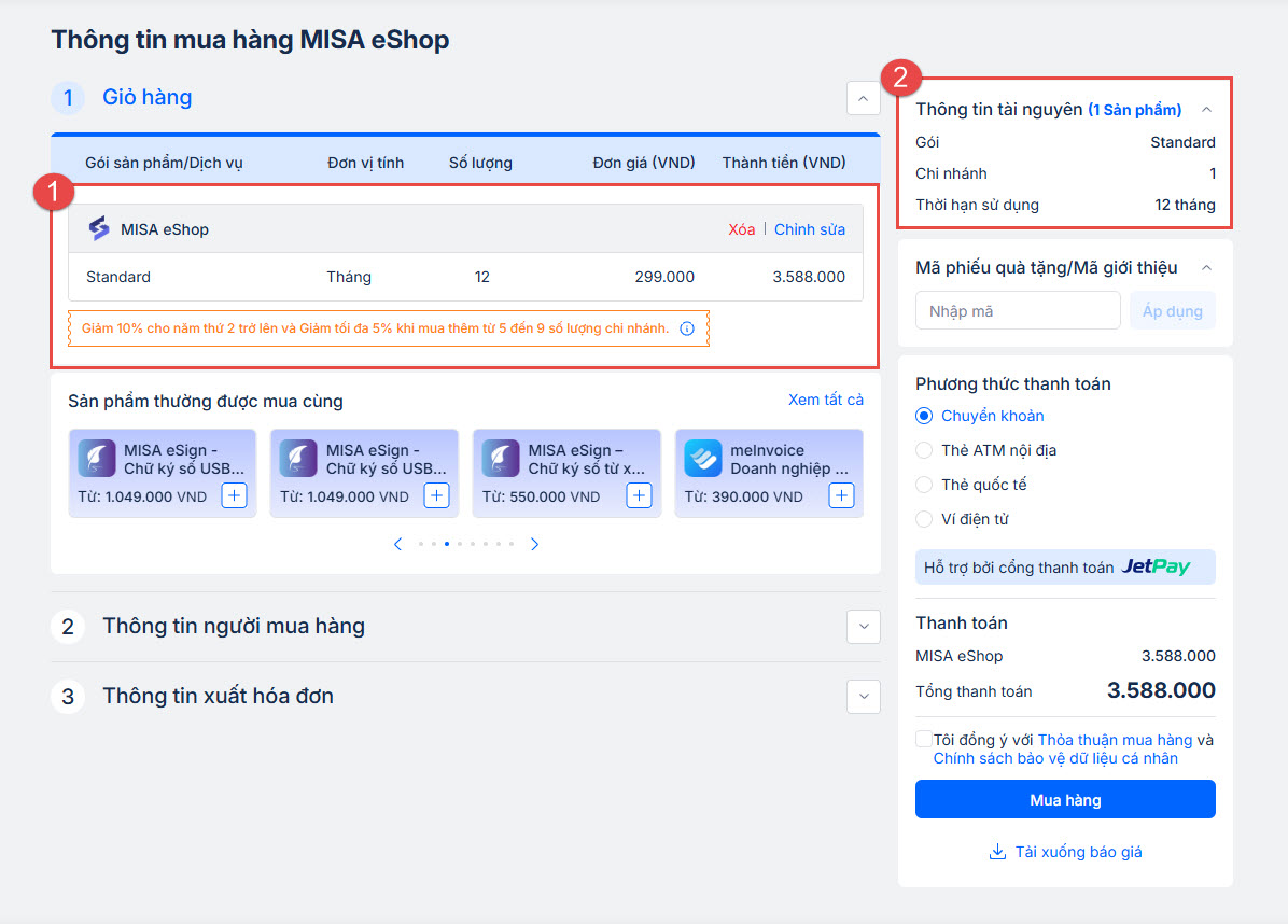 Bước 1: Truy cập MISA Store tìm kiếm sản phẩm cần mua
