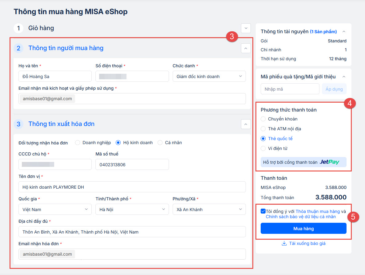 Bước 2: Nhập thông tin mua hàng và thanh toán