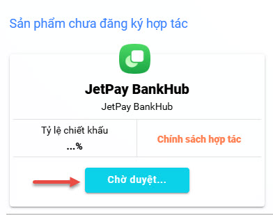 - Khi đăng ký thành công, sản phẩm JetPay BankHub sẽ ở chế độ chờ duyệt.