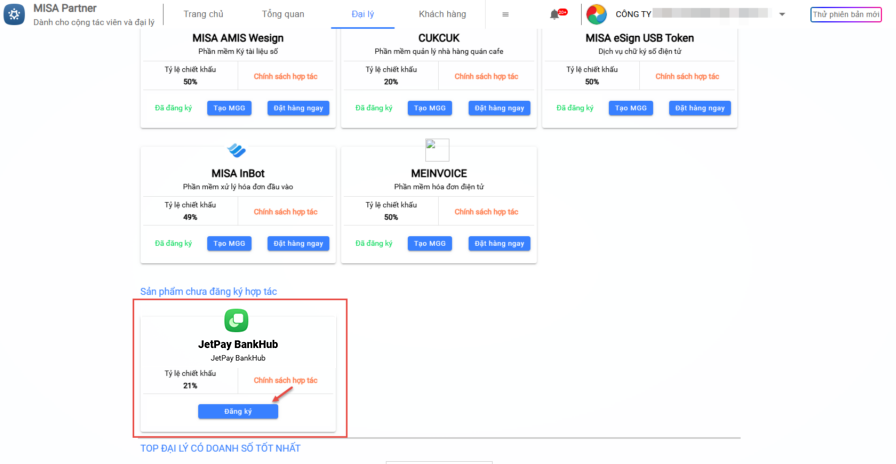 2.1.1. Hướng dẫn đại lý/CTV đăng ký sản phẩm Bankhub trên MISA Partner.
