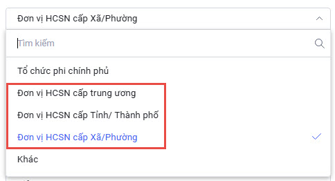 - Sau đó, hệ thống sẽ hiển thị thêm trường Phân loại KH HCSN để anh/chị chọn đơn vị cần tạo tương ứng.