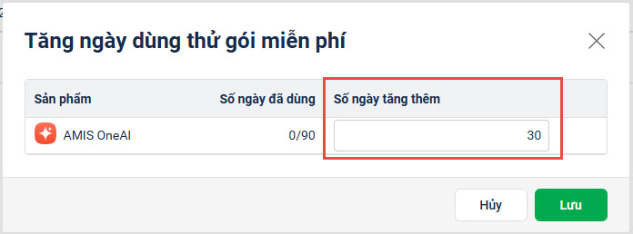 Bước 2: Tăng ngày dùng miễn phí OneAI cho KH