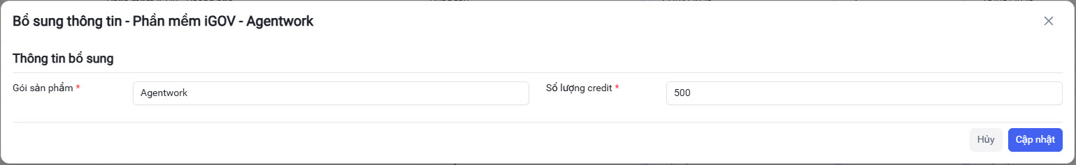 - Nghiệp vụ iGOV Agentwork mặc định 500 Credits.