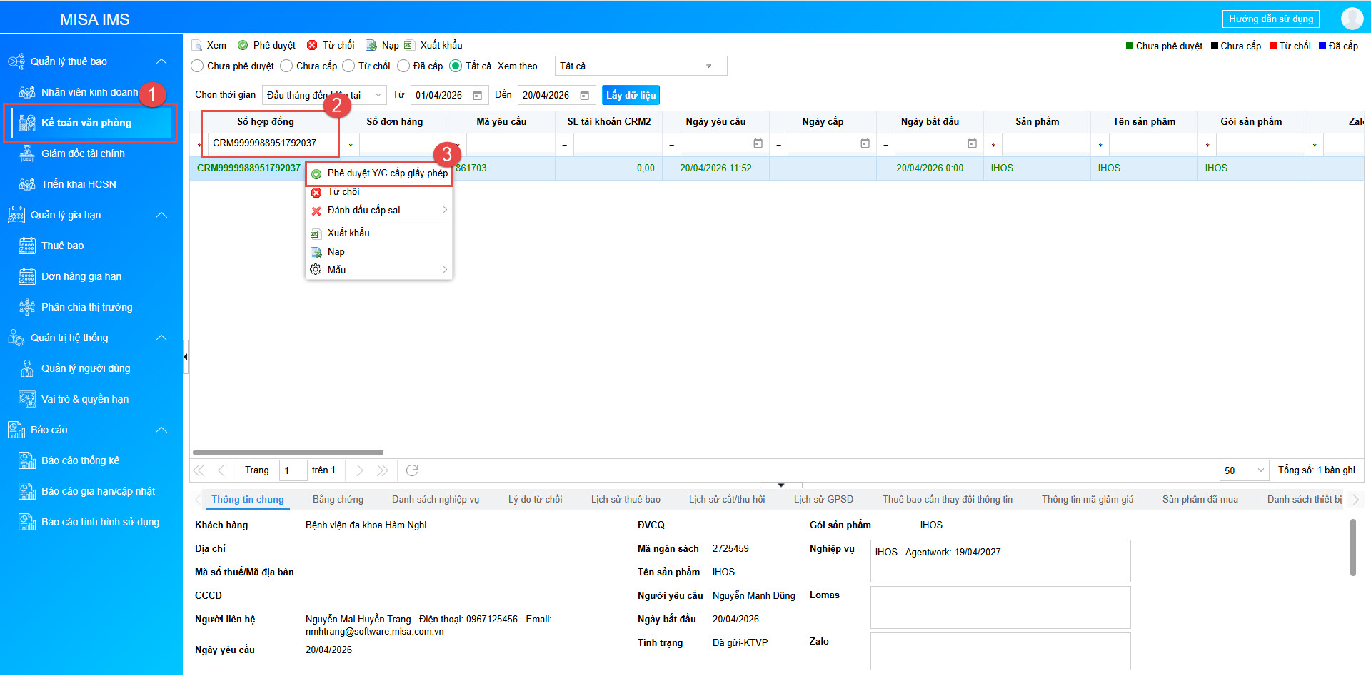 Bước 3: Phê duyệt yêu cầu cấp GPSD/Thuê bao trên IMS