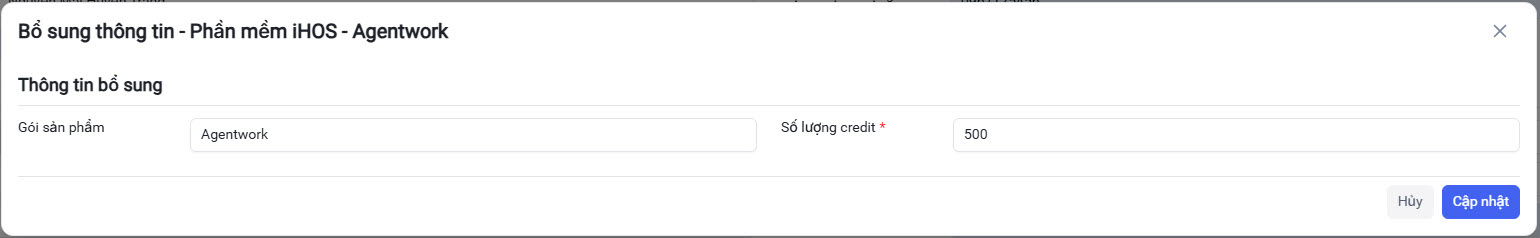 - Nghiệp vụ iHOS Agentwork mặc định 500 Credits.