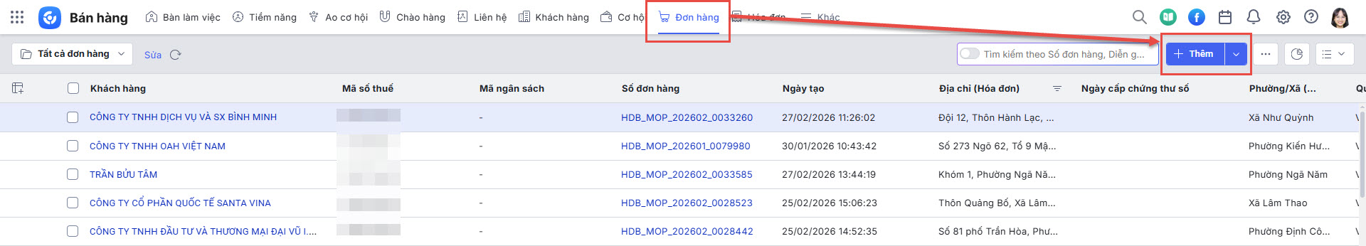 • Nhấn Thêm để khởi tạo đơn hàng mới.