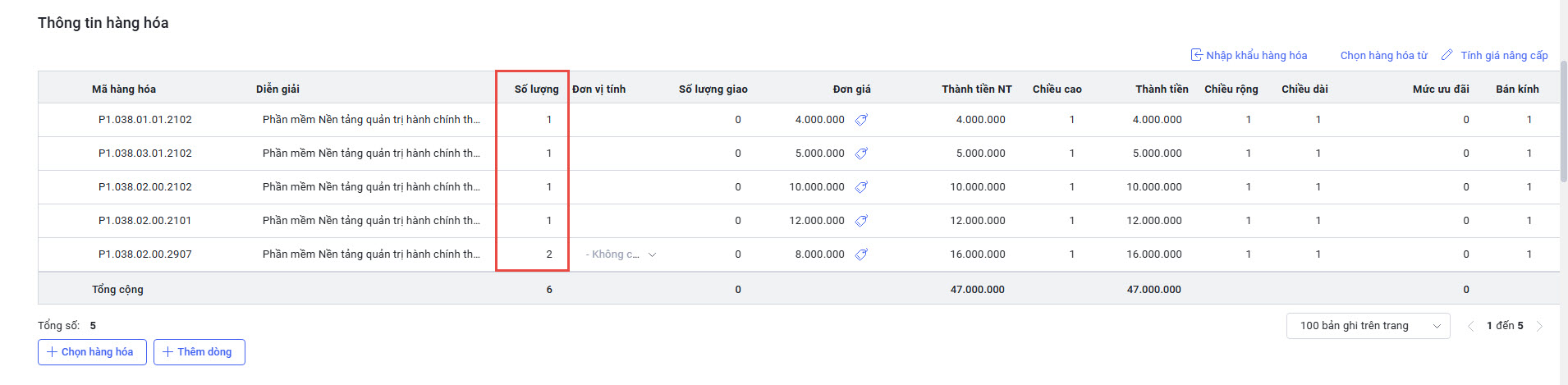 • TH1: Mua thêm tài nguyên trong cùng đơn hàng mua mới iGOV Kế toán.