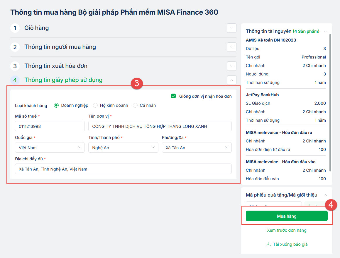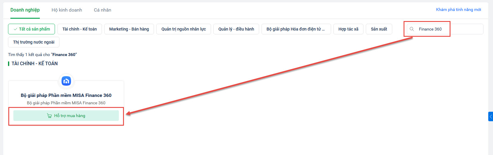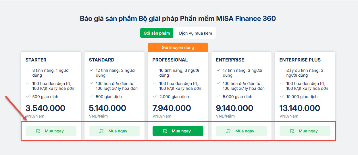 Bước 2: Chọn mua sản phẩm Bộ giải pháp Phần mềm MISA Finance 360