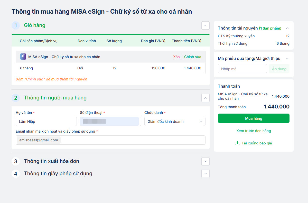 Bước 2: Chọn mua sản phẩm MISA eSign