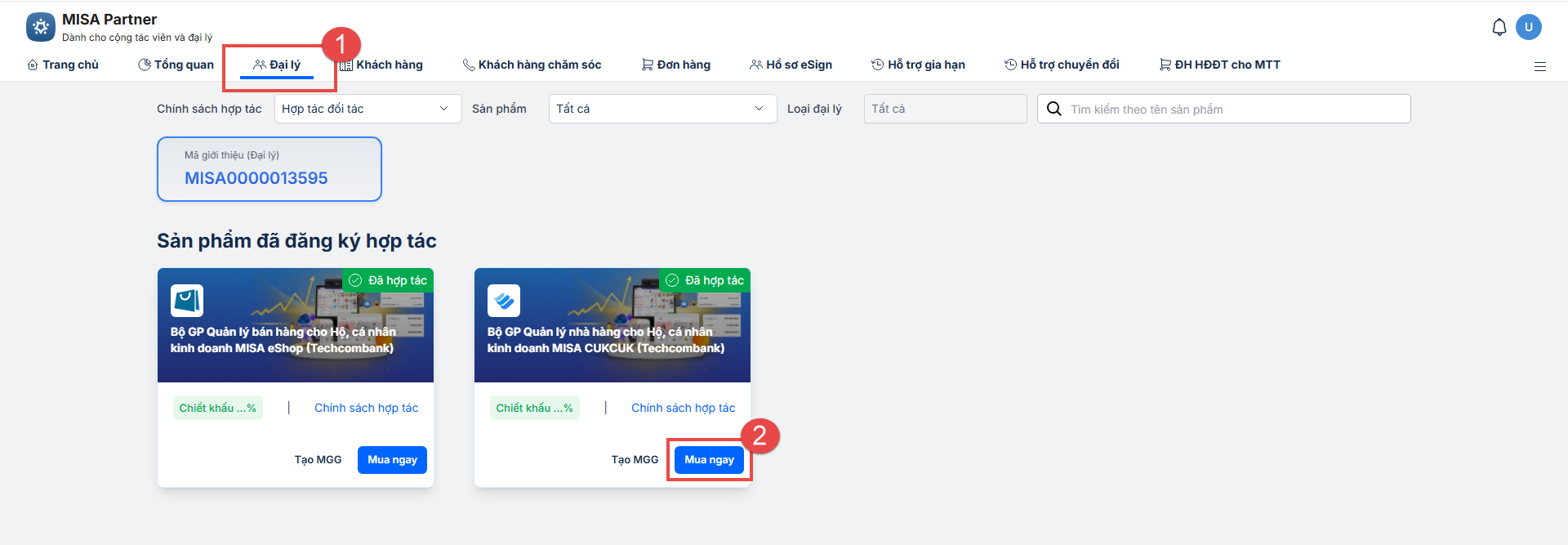 Bước 1: Truy cập MISA Partner lựa chọn sản phẩm