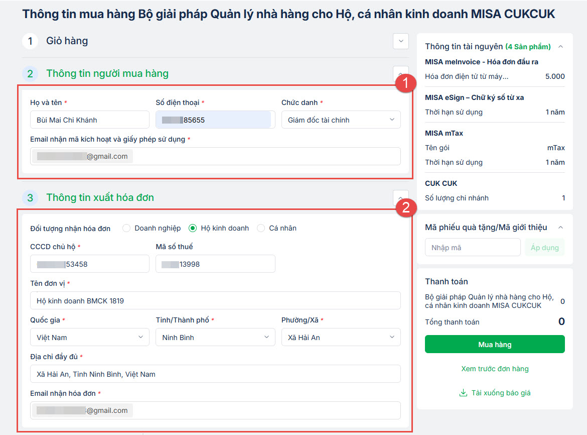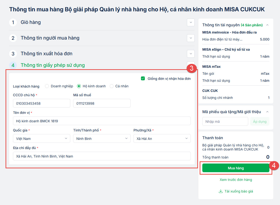 Mô phỏng kích hoạt Bộ giải pháp Quản lý bán hàng cho Hộ, cá nhân kinh doanh MISA eShop