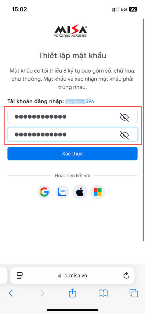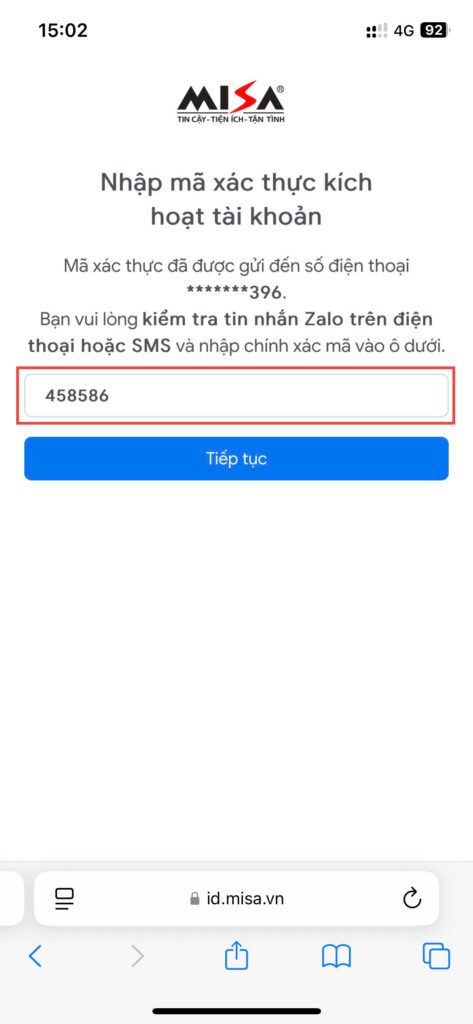 - Sau đó, KH lấy mã xác thực được gửi về Zalo để bắt đầu kích hoạt và thiết lập mật khẩu.