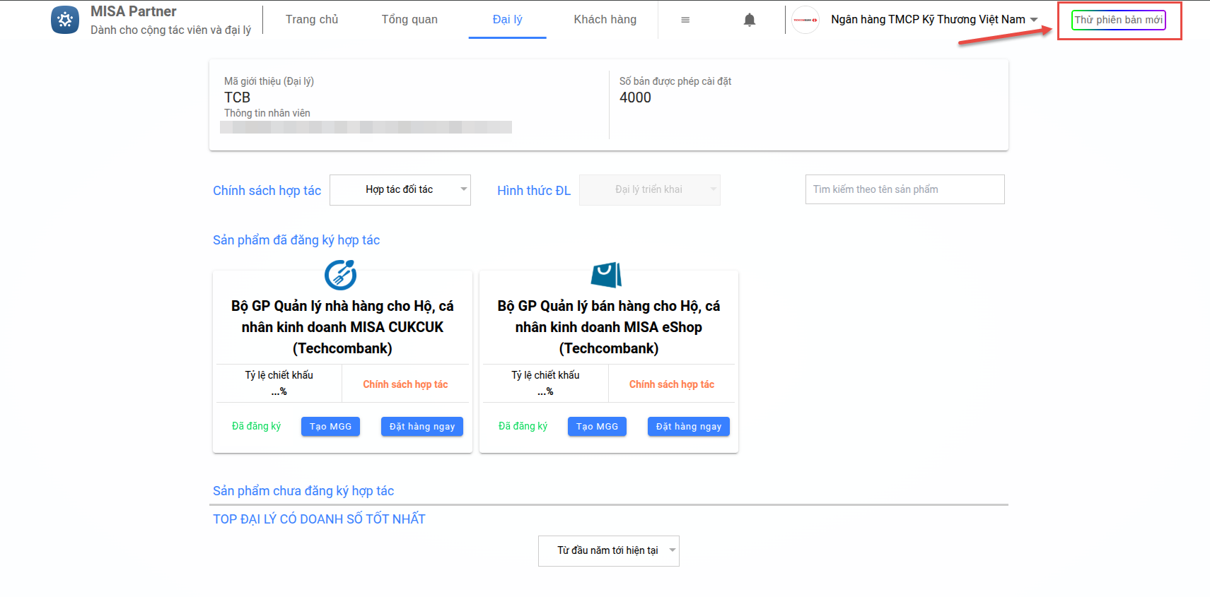 - Anh/chị nhấn Thử phiên bản mới để chuyển sang giao diện mới – giao diện Version 2.0.