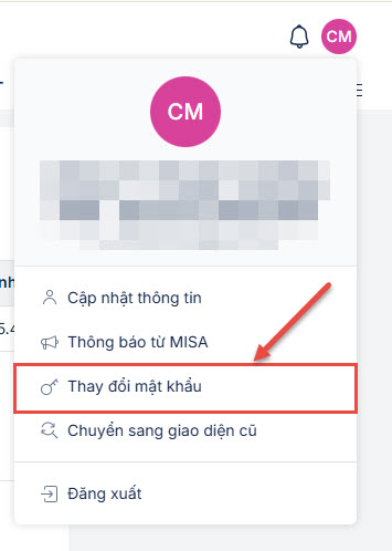 - Đăng nhập theo tài khoản được MISA cung cấp và đổi mật khẩu.