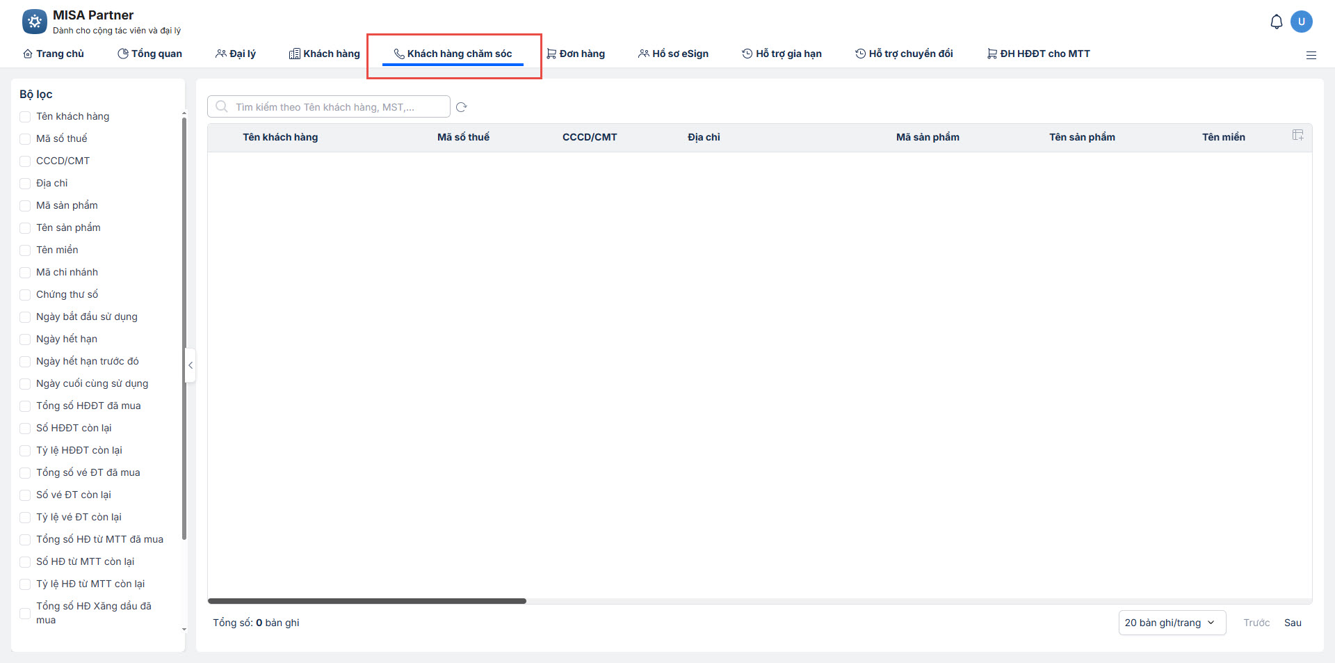 - Trên phân hệ Khách hàng chăm sóc, anh/chị có thể theo dõi trạng thái sử dụng của KH.
