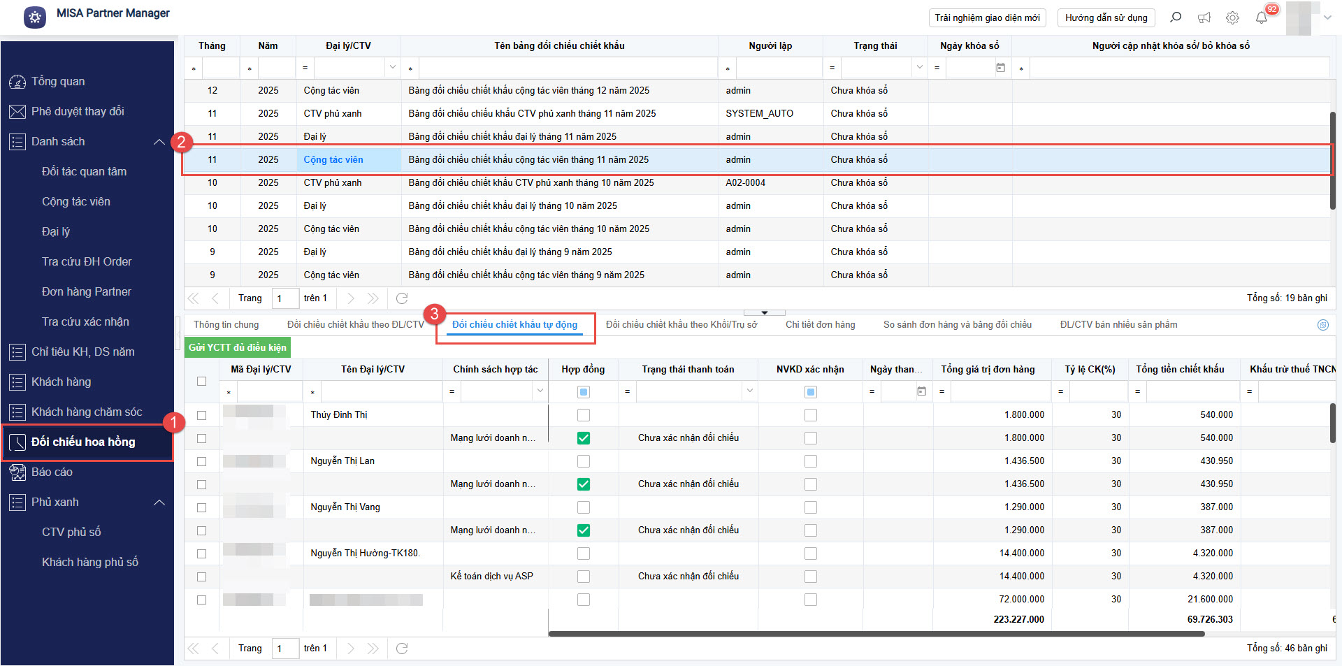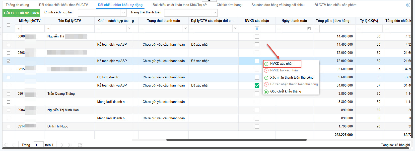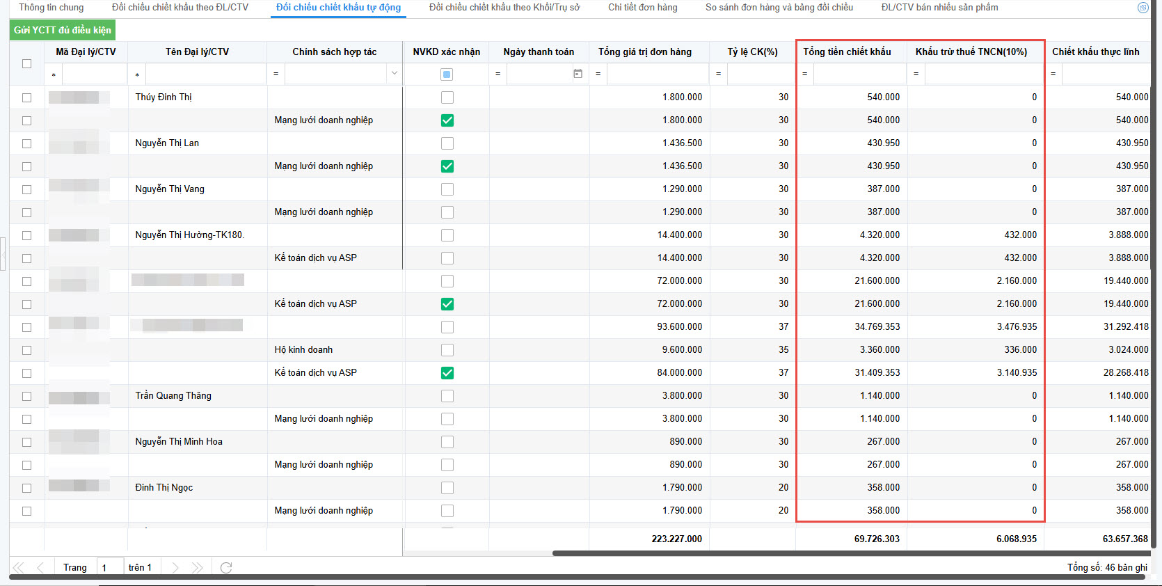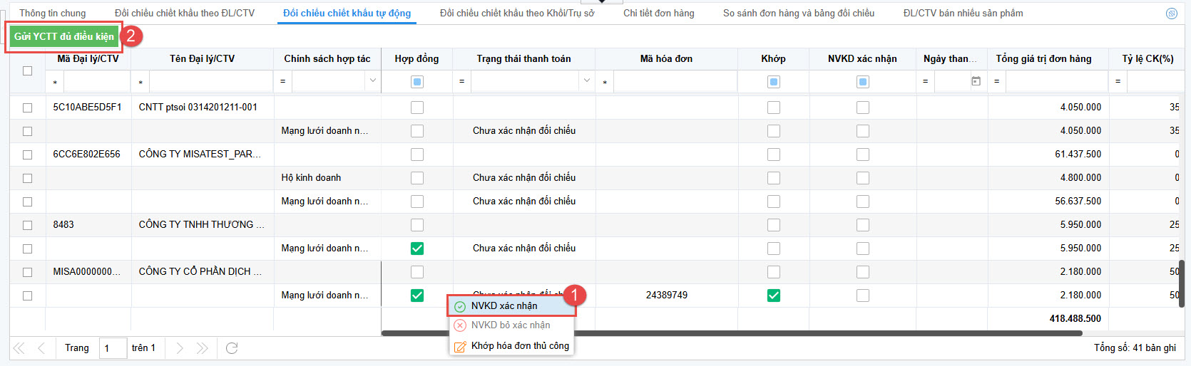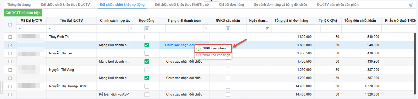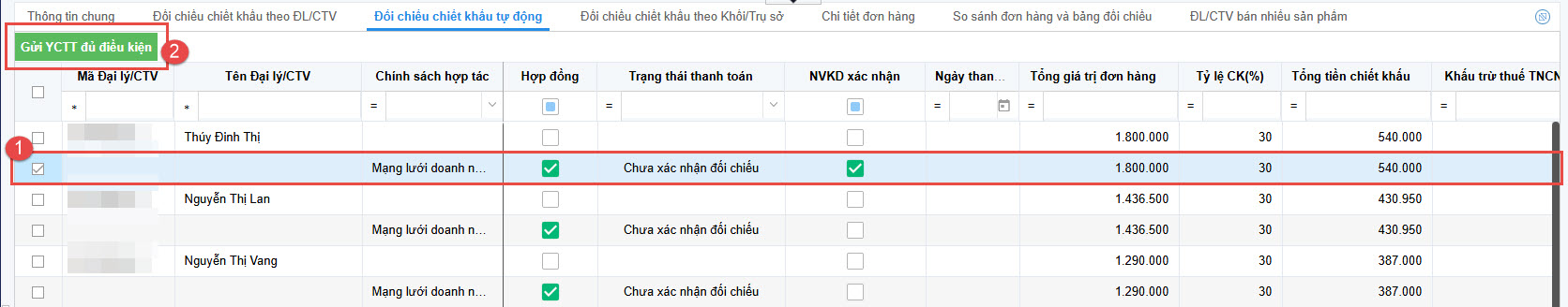 2.2. Kiểm tra đối chiếu chiết khấu và gửi YCTT đủ điều kiện của CTV