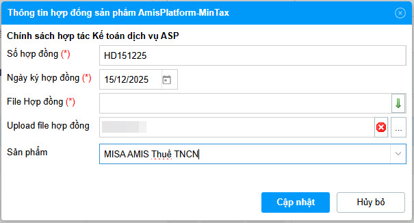 - Nếu chưa có thông tin hợp đồng => anh/chị thực hiện cập nhật hợp đồng theo hướng dẫn chi tiết tại đây.
