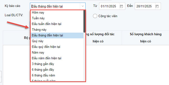 • Loại ĐL/CTV: tích chọn Tất cả.