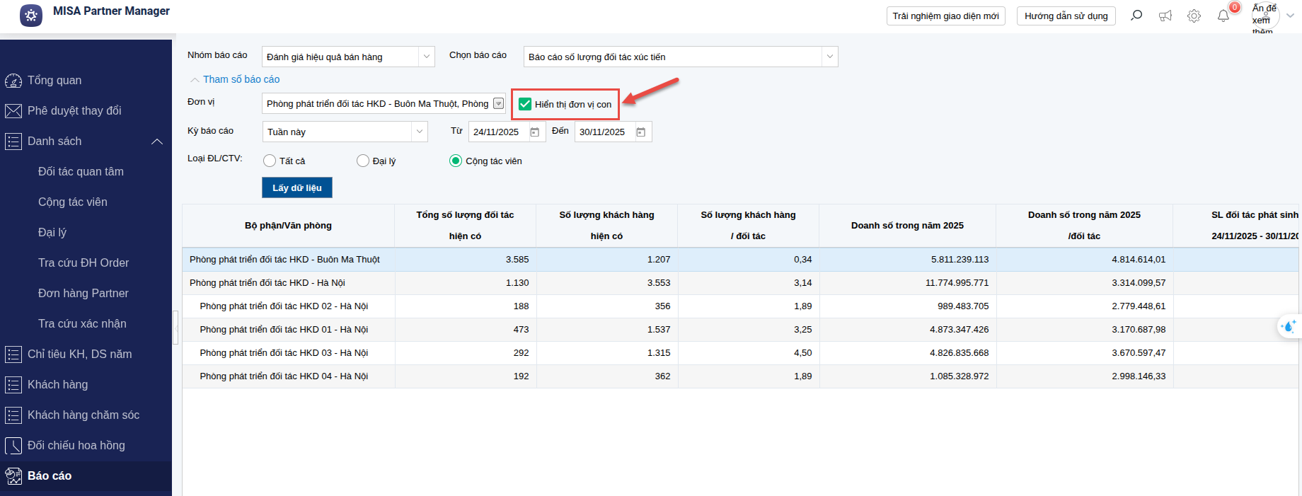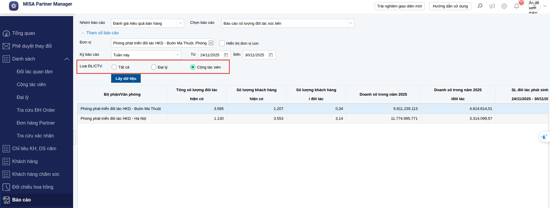 Hướng dẫn Quản lý xem Báo cáo số lượng đối tác xúc tiến – MISA Store