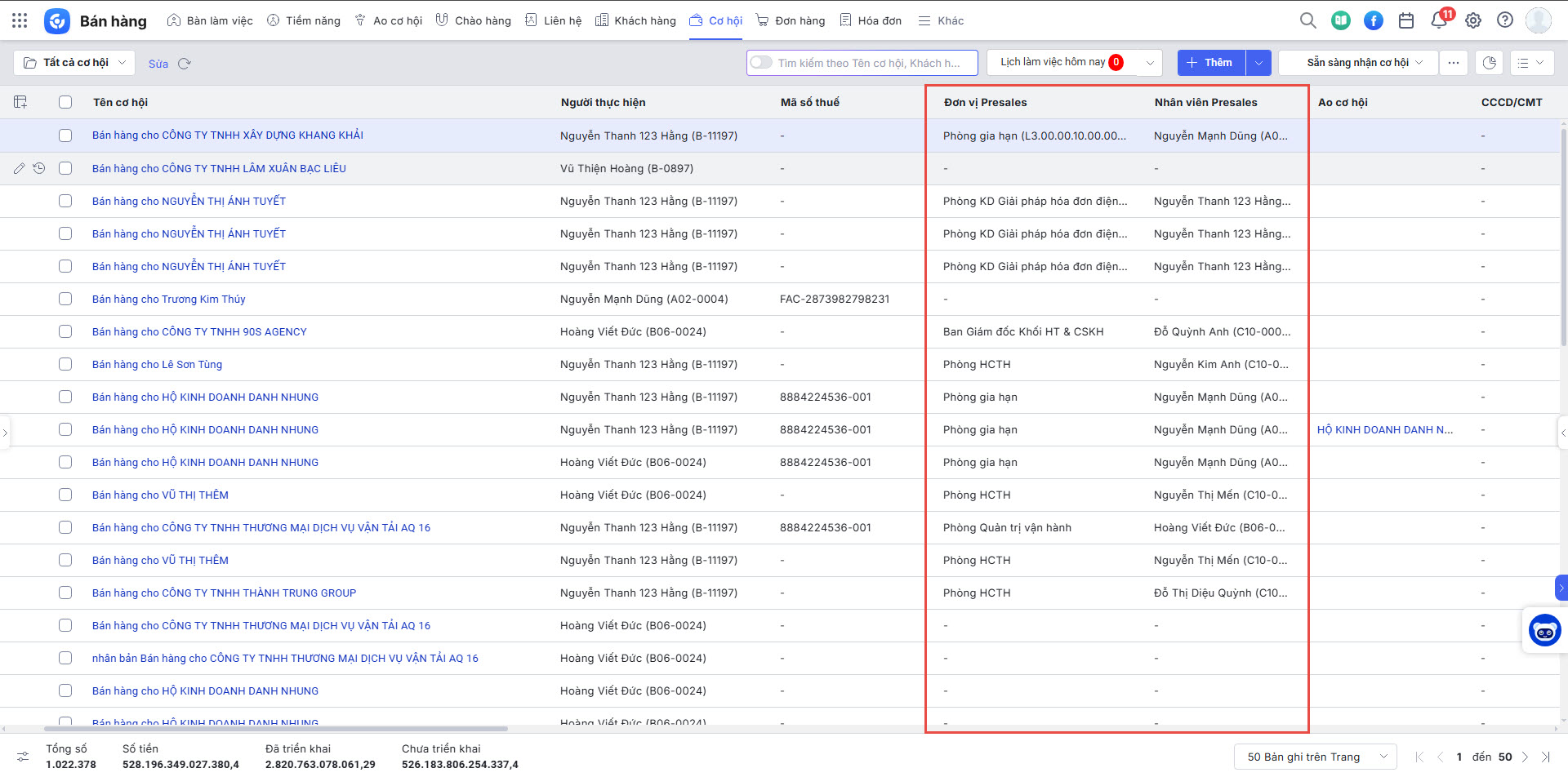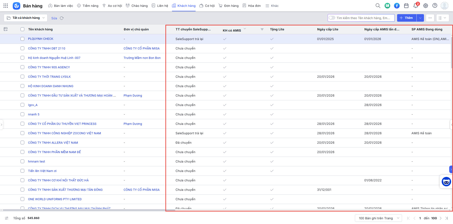 - Giao diện sẽ lấy lên tất cả các khách hàng có đánh dấu KH có AMIS + NV Presale hoặc NV SaleSupport là của tôi.