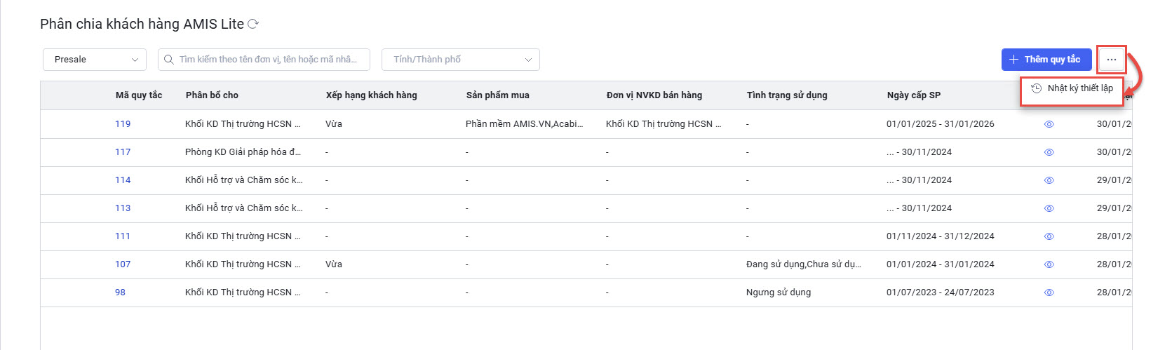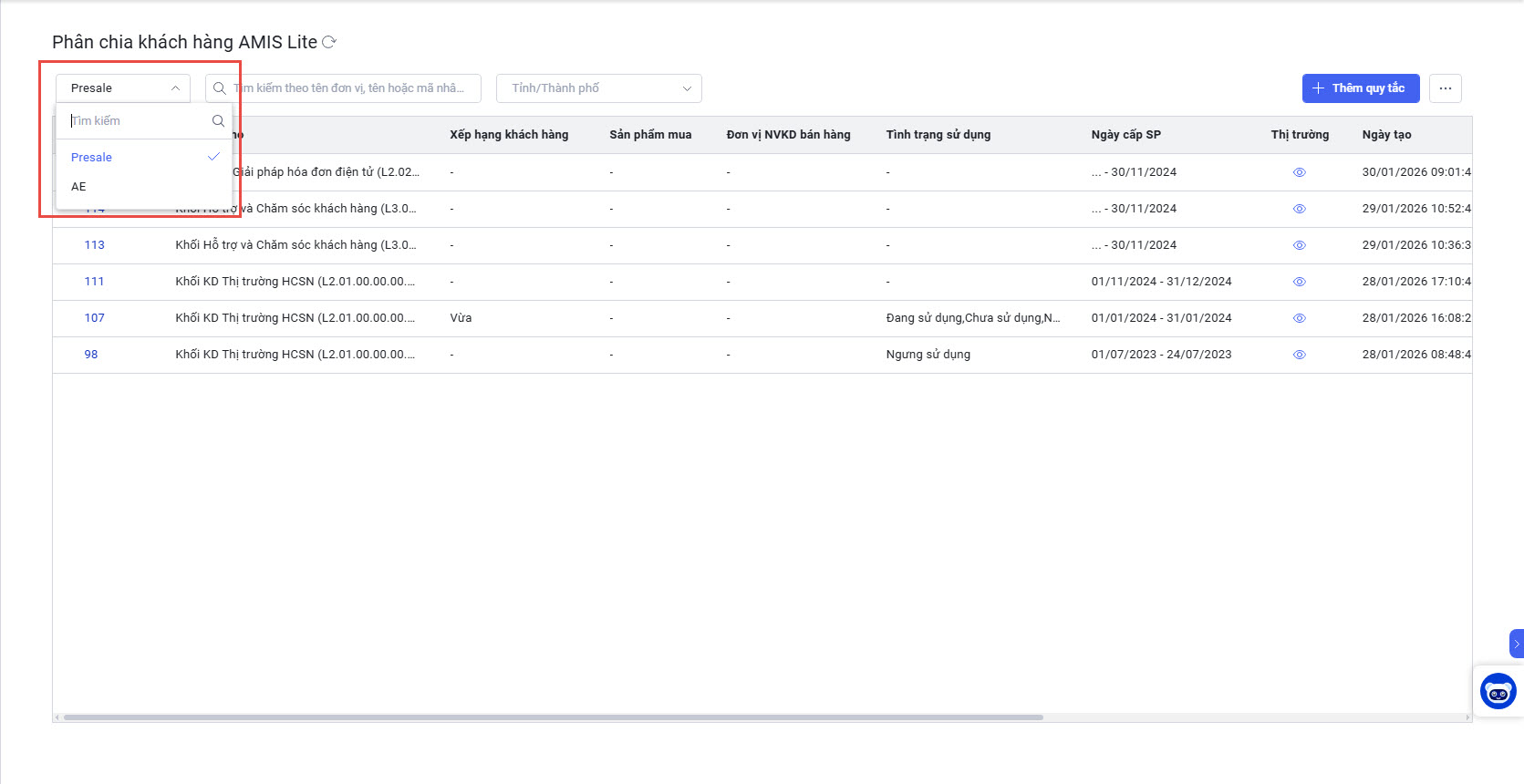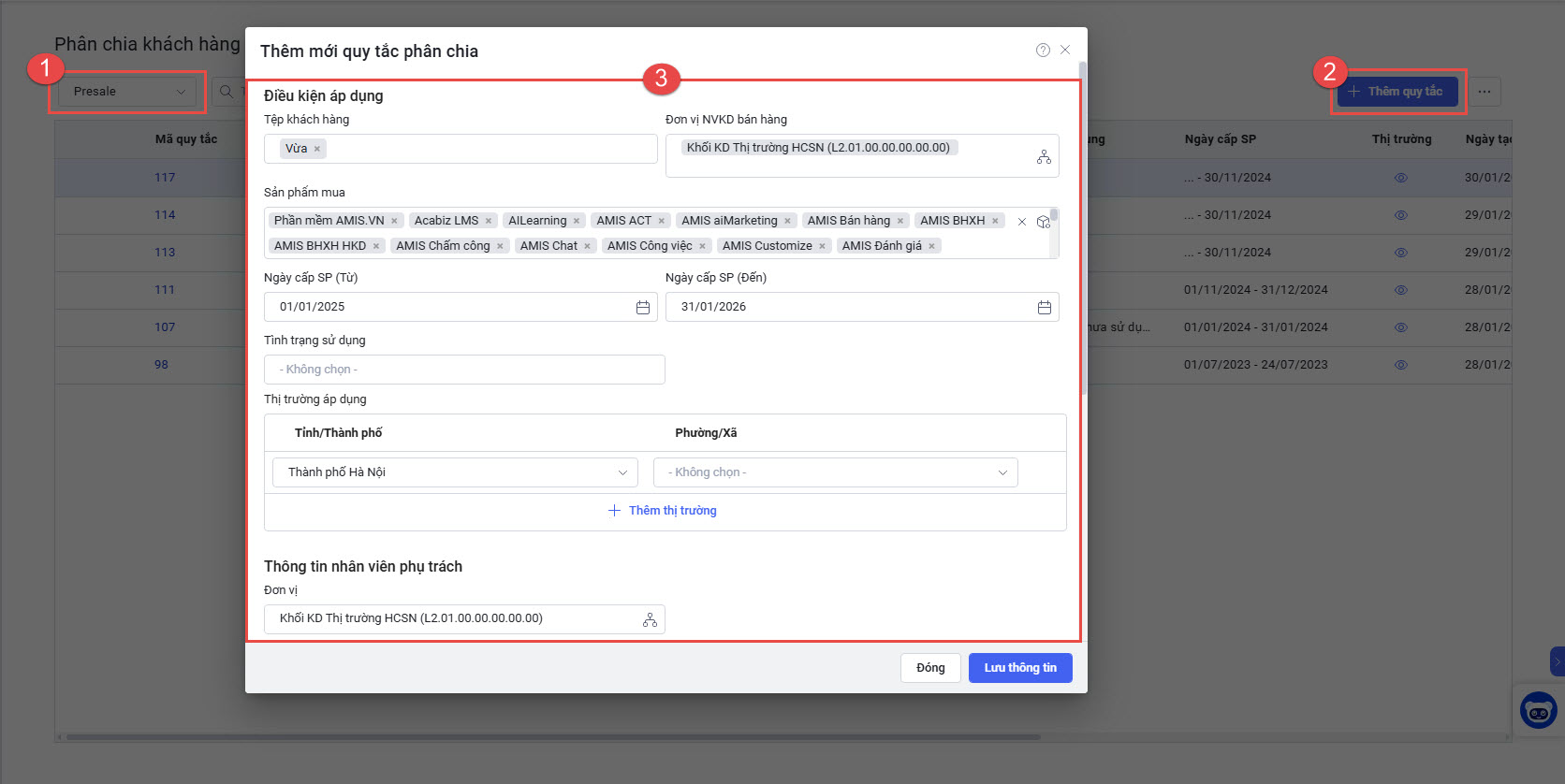 2.1. Thiết lập quy tắc Phân chia Tự động khách hàng Chiến dịch AMIS Lite cho nhân viên Presale và Sale Support