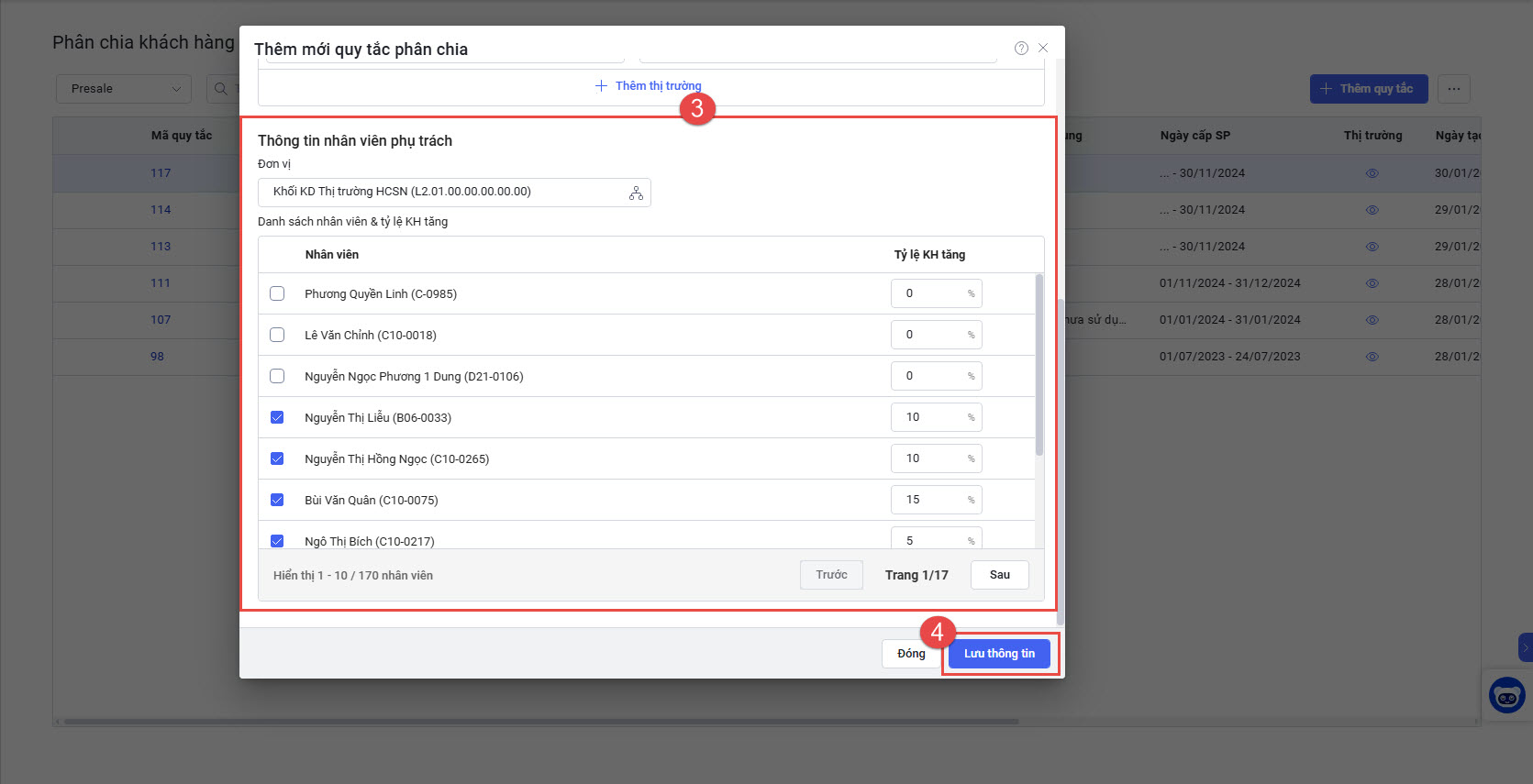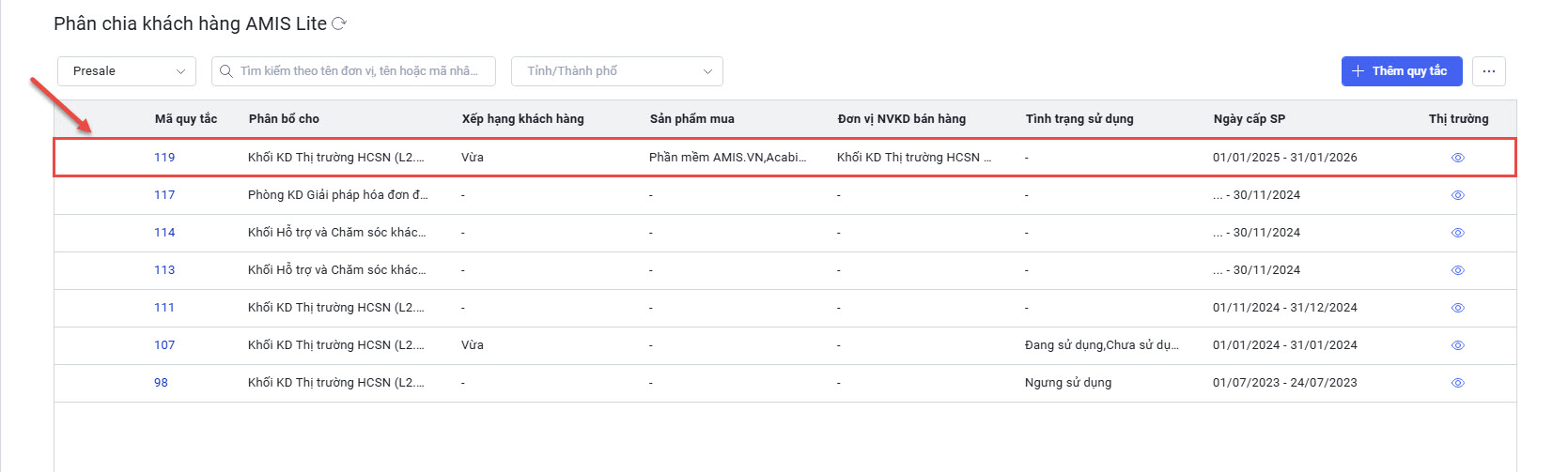- Anh/chị chọn vai trò Presale => nhấn Thêm quy tắc.