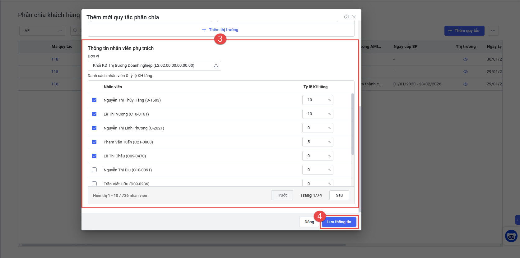 - Nhập các thông tin cần thiết để thêm mới quy tắc phân chia => nhấn Lưu thông tin.
